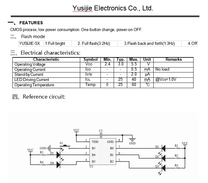 Product Name: YUSIJIE-5X LED Power on timing IC chip SOP8 Button switch (full light-full flash-back flash-off) LED driver ic chip