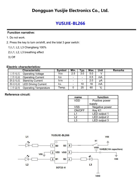 Brand Name YUSIJIE-BL266 Type Drive IC Package SOT 23-6 Package Tape&Reel/Tray |