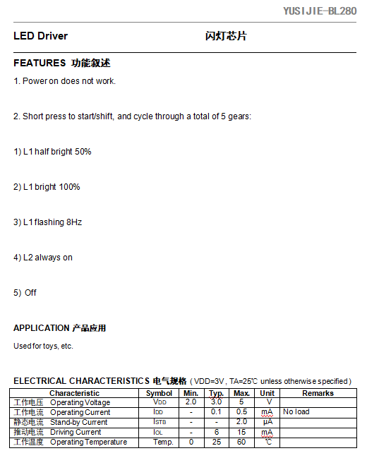 » YUSIJIE-BL280 Flashlight button switch IC