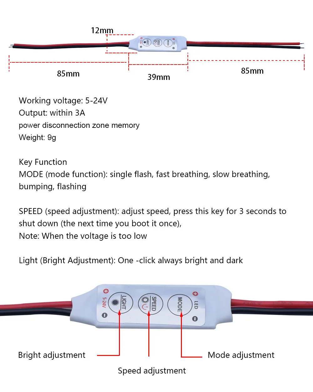 Product Description Working voltage: 5-24V