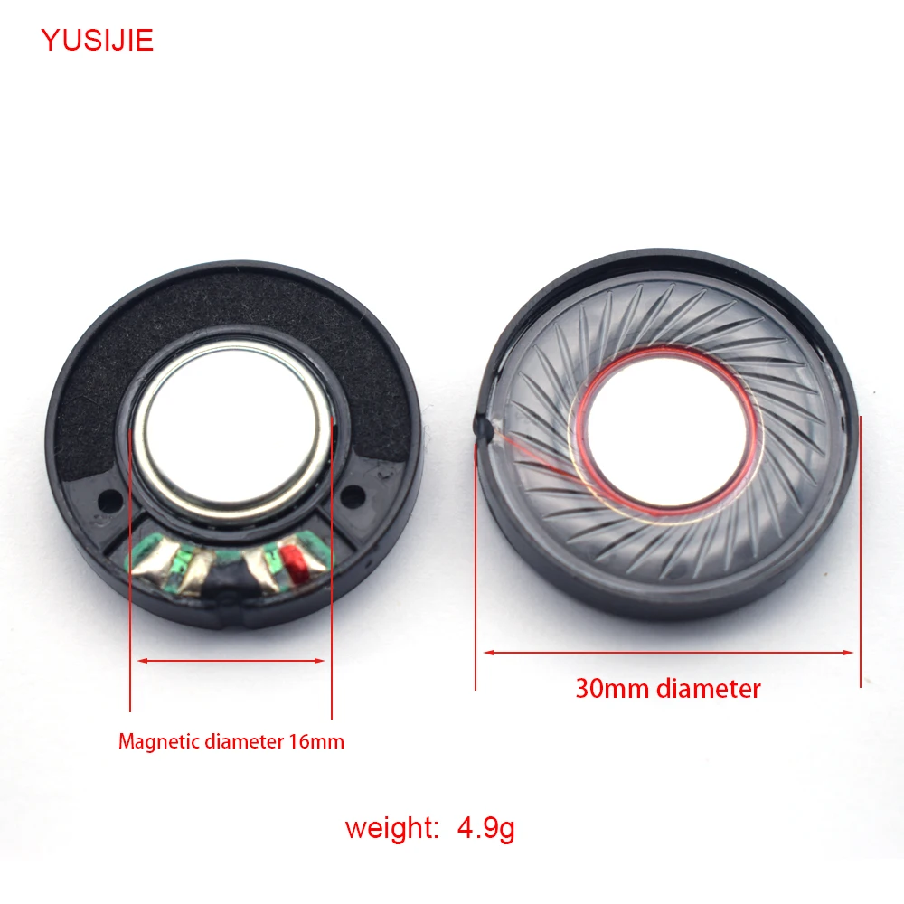 Location: Home » Products » Speaker buzzer sound element » Headphone speakers » YUSIJIE-448 Factory direct supply 30mm round inner magnetic horn plastic shell 32 ohm Bluetooth headphone speaker