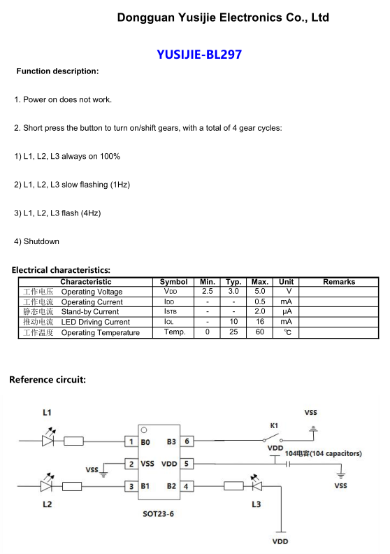 YUSIJIE-BL297 Always on slow flashing fast flashing off led ic